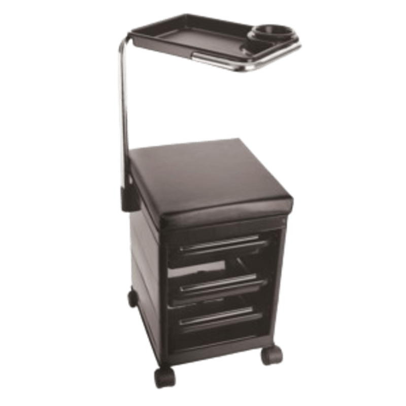• Side tray mounted on chrome finish metal pipe with 360 approach.