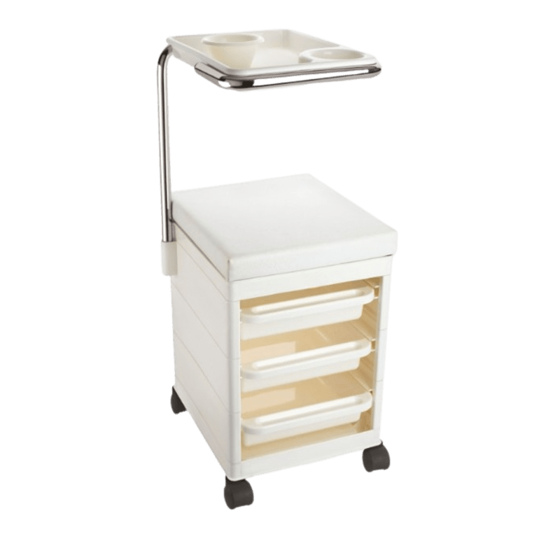 • Side tray mounted on chrome finish metal pipe with 360o approach.